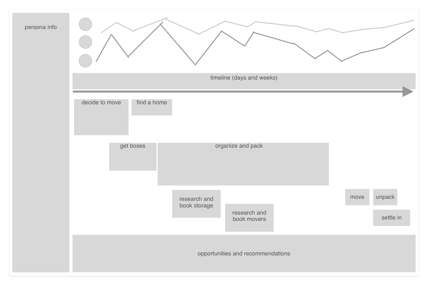 Omit the opportunities and recommendations—identifying these were part of the overall business goal behind the map and we didn’t want to be prescriptive with our solutions and miss out on other ideas.