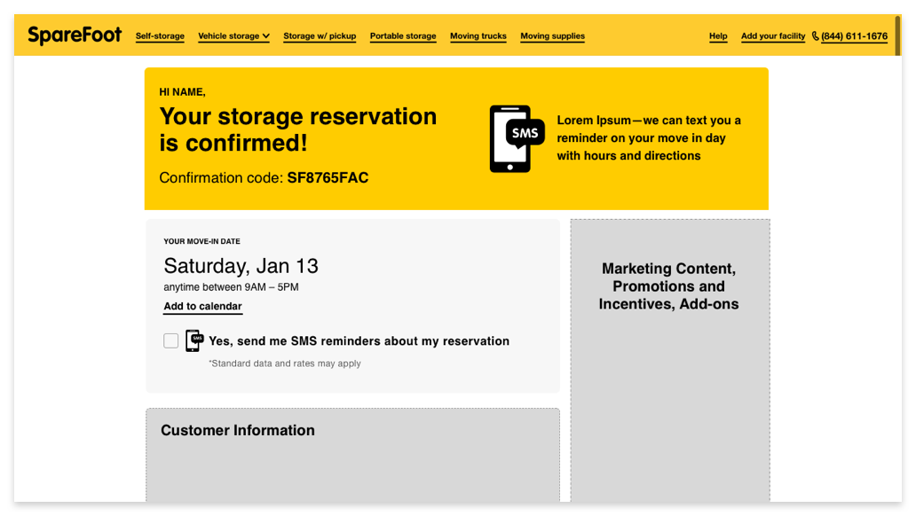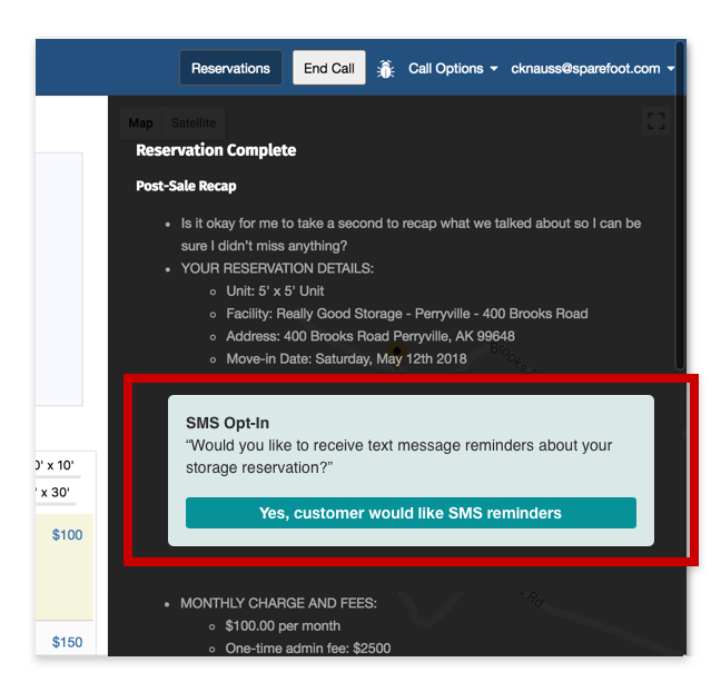 We are also in the process of arming our call center agents with the tools and capabilities they need to offer SMS reminders to those who book their storage unit over the phone. We have simplified our opt-in language, and once the user has agreed to SMS reminders, they are sent a text with the legal details.