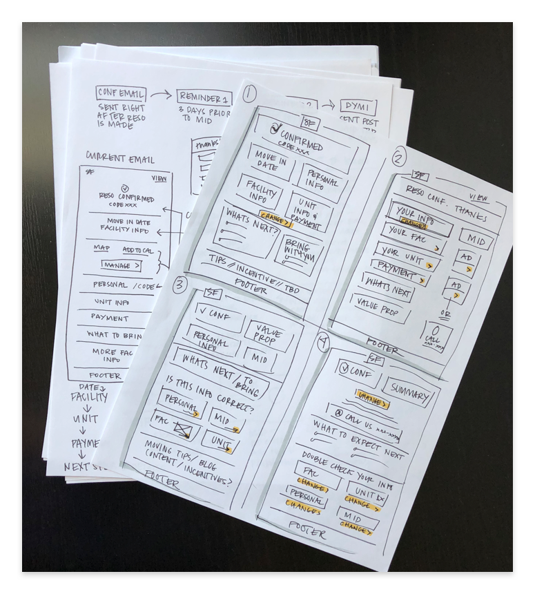 I audited the content in each email and sketched various iterations focusing on a clear hierarchy including all relevant information needed to move-in.